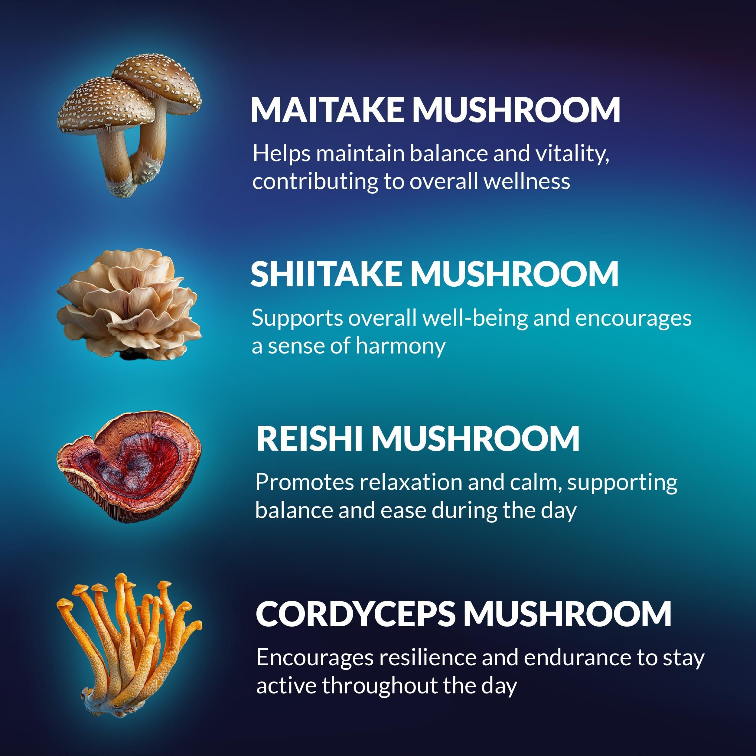 3.by incorporating reishi and lion's mane mushrooms, our supplement effectively reduces stress, promotes a relaxed state, and clarifies thinking, aimed at improving mood, memory, and focus.