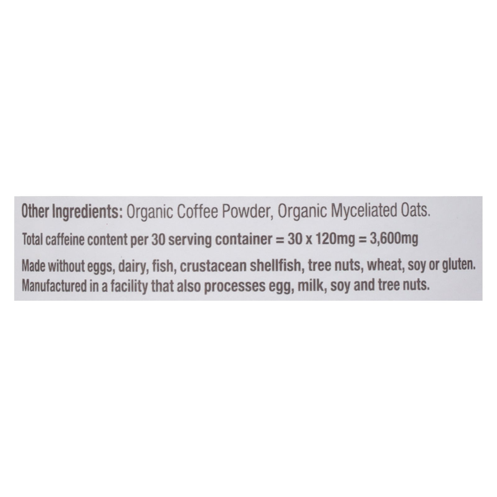 Mushroom superfood. Focus. Immunity. Energize. Immune support. Lions mane, cordyceps, turkey tail, reishi extract & ginkgo biloba. Powerful superfoods: single origin, 100% arabica coffee sustainably grown in papua new guinea with bold chocolatey notes and a rich full bodied taste. Combined with organic lion's mane, cordyceps, turkey tail and reishi superfood mushrooms plus ginkgo biloba for focus and vibrant health. Each serving of om mushroom coffee blend contains 2,000mg of certified organic whole food mushroom powder +100mg of organic reishi whole food extract standardized to 35% beta glucans. Lion's mane-the smart mushroom: helps support memory, focus, nerve health, creativity and mood. Cordyceps-performance mushroom: originally discovered and used by tibetan herdsmen at high altitudes to help support physical energy, vitality, stamina and endurance. Turkey tail-your immune defense: a vegan mushroom with immune supporting benefits. One of the most researched functional mushrooms for its powerful polysaccharides. Reishi-shroom away stress: an adaptogen revered by traditional herbalists for its ability to help the body cope with everyday physical and mental stress by restoring balance and immune health. Ginkgo biloba-cognitive support: for thousands of years, leaves from the ginkgo biloba tree have been used routinely in chinese medicine to help support cognitive health, such as memory and focus. Total caffeine content per 30 serving container = 30 x 120mg = 3,600mg biodegradable canister.