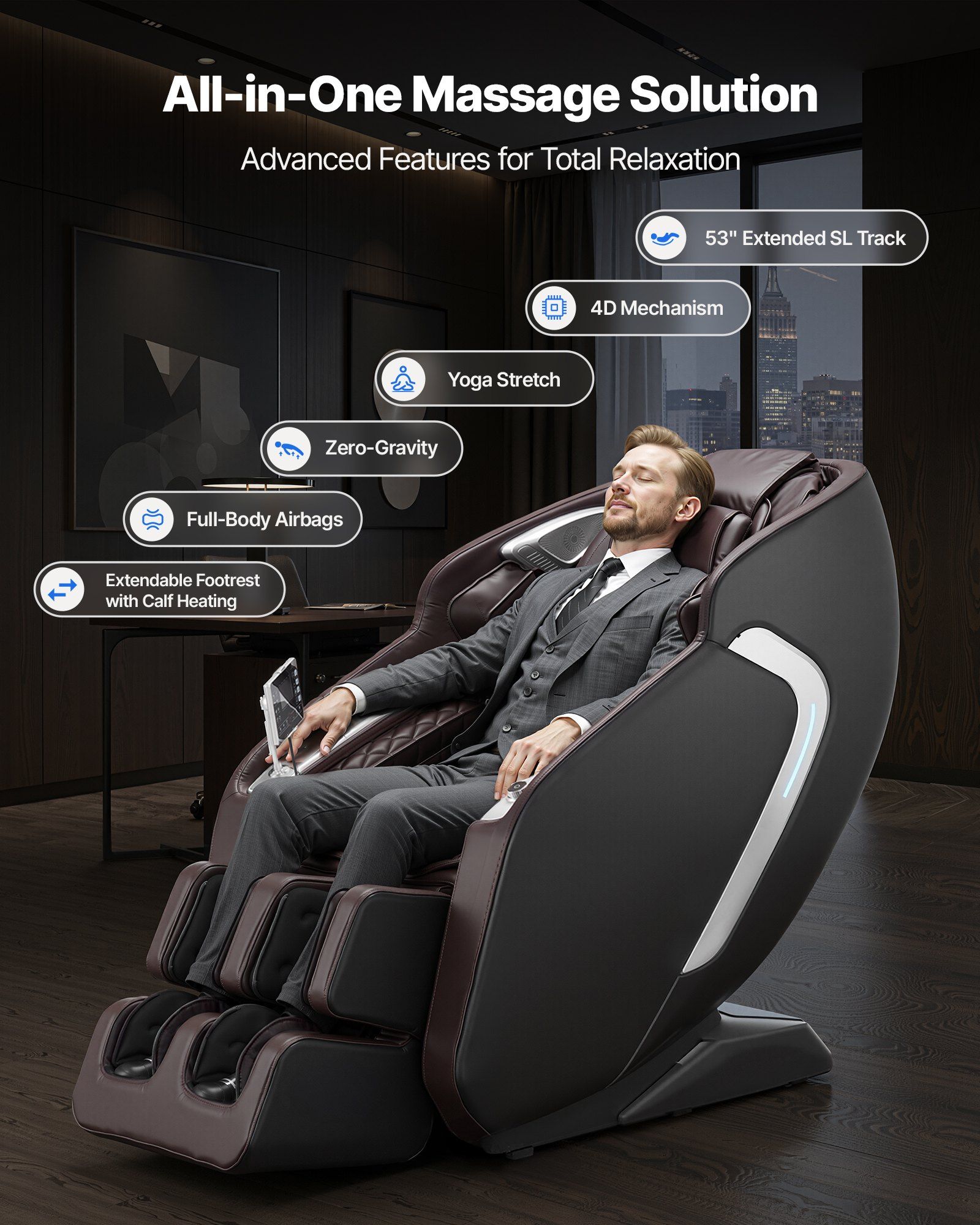 VEVOR Massage Chair, 4D Full Body Zero Gravity Recliner with SL Track, Yoga Stretch, AI Voice Control, Heat, Foot Roller, Retractable Pedal VEVOR Massage Chair, 4D Full Body Zero Gravity Recliner with SL Track, Yoga Stretch, AI Voice Control, Heat, Foot Roller, Retractable Pedal VEVOR Massage Chair, 4D Full Body Zero Gravity Recliner with SL Track, Yoga Stretch, AI Voice Control, Heat, Foot Roller, Retractable Pedal